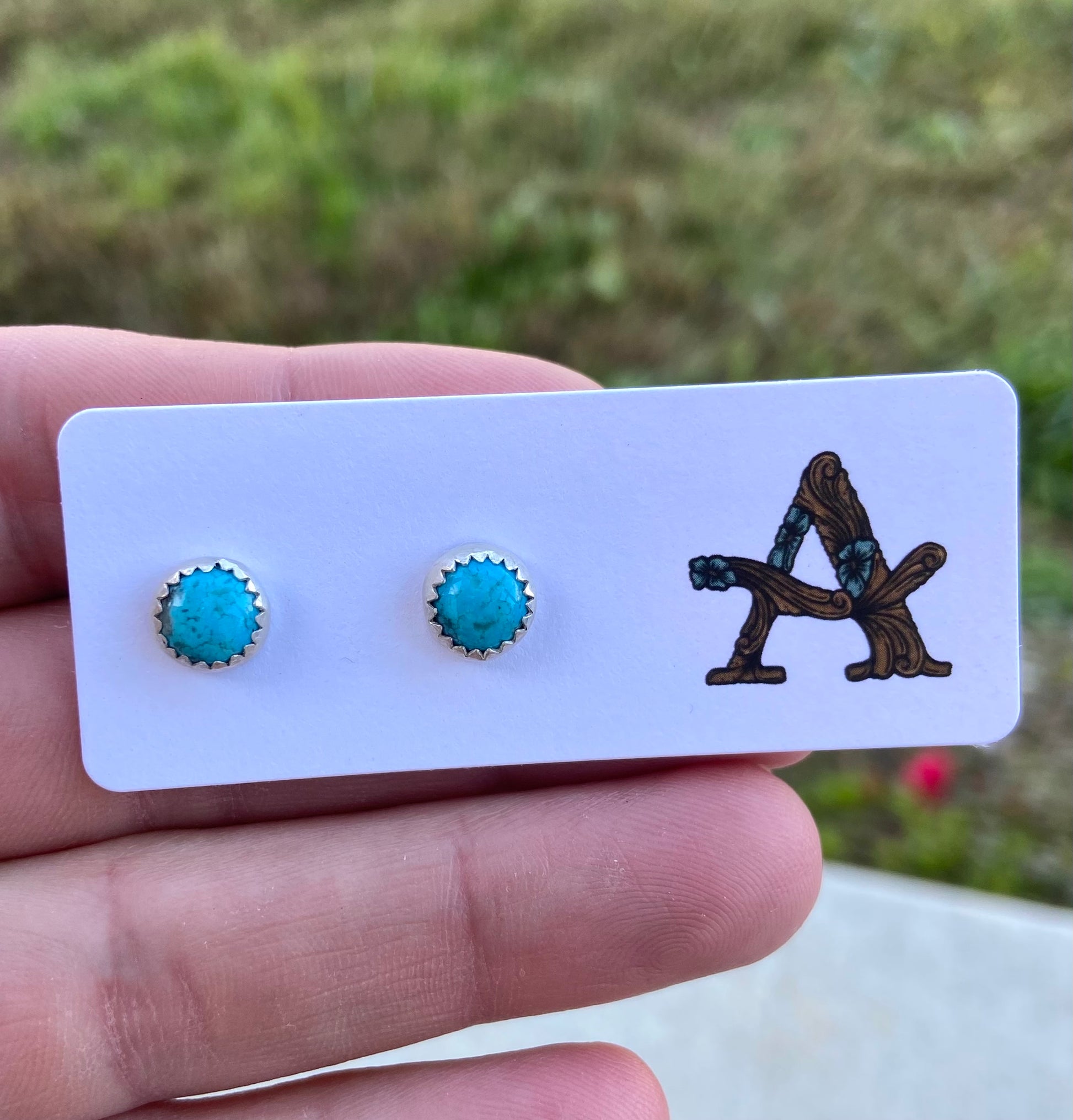 Perfect size for everyday. 7 mm. Medium blue Kingman Turquoise with matrix. Sterling silver. Handmade.